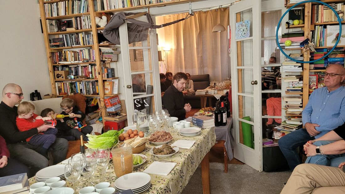 Včera jsme se k tradiční sederové večeři sešli v rodině Bánociových (naše společenské prostory v suterénu jsou stále v rekonstrukci). A všichni jsme vysekli velkou poklonu.