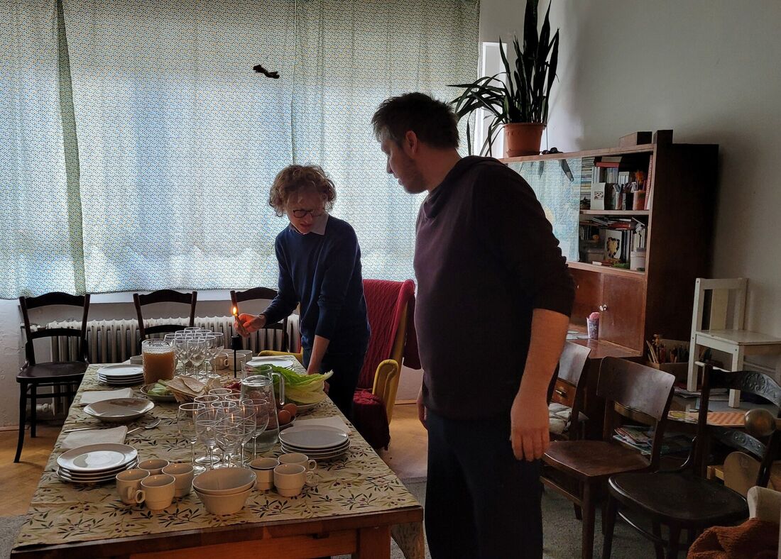 Maťko s Liou ji i přes poněkud stísněné prostory (bylo nás kolem třiceti) připravili báječně. Přesně podle židovského obyčeje ji řídil a detailní výklad poskytl sám bratr farář.